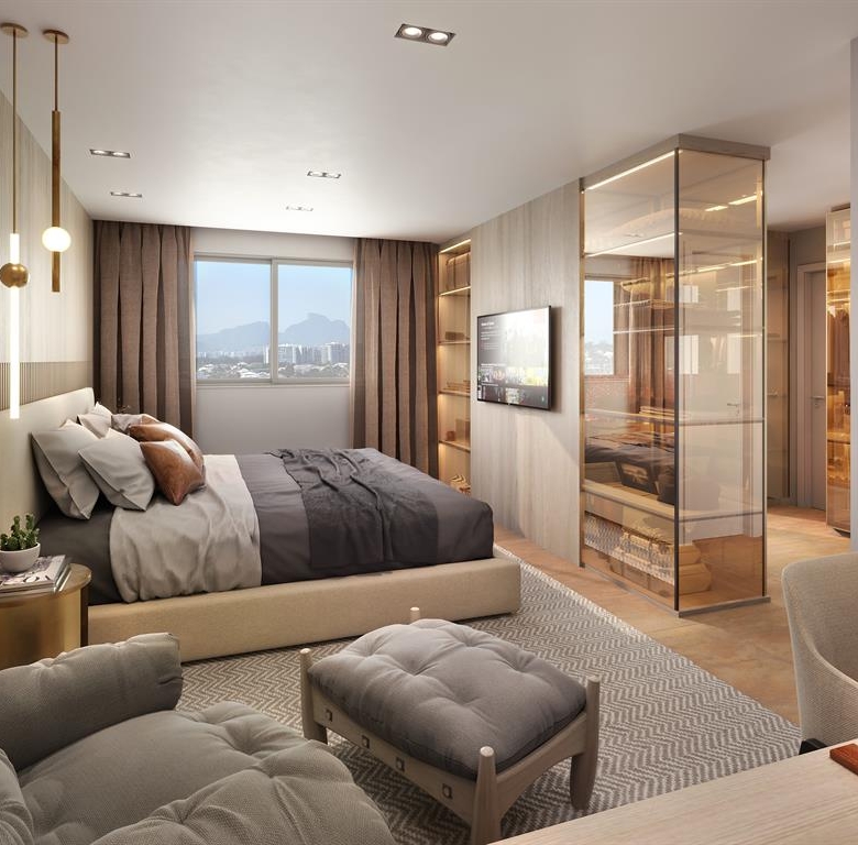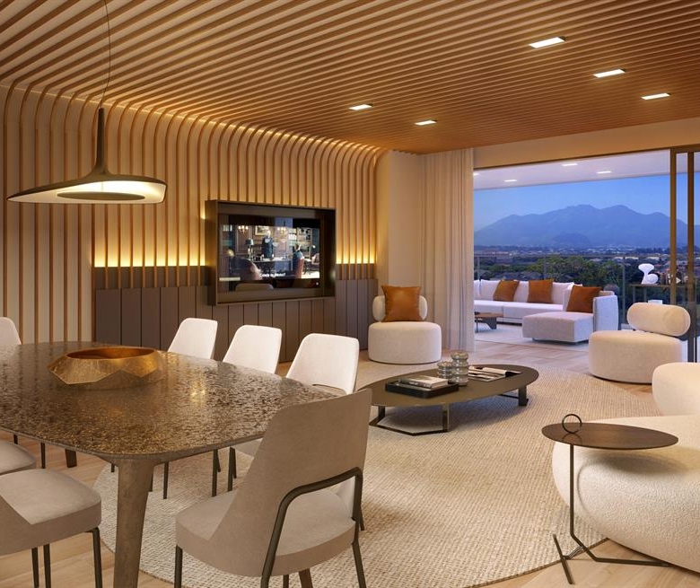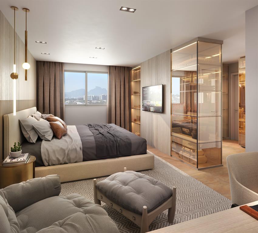 Temos plantas de até 4 suítes com sala integrada na varanda, cozinha com copa com amplo espaço para locomoção e armários. O resultado disso é um conjunto totalmente diversificado entre as tipologias e plantas da Barra da Tijuca, porém traz também uma harmonia entre os apartamentos.