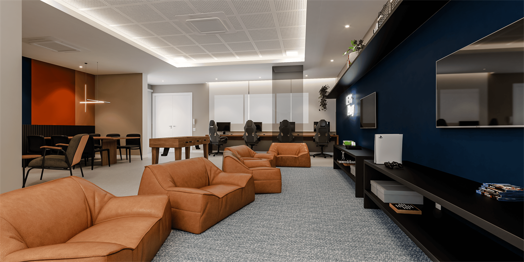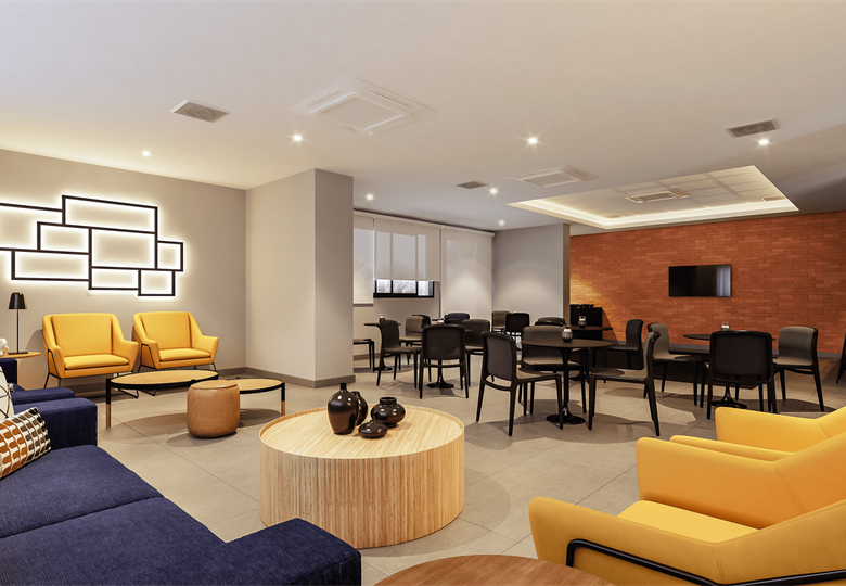 Quadras de tênis de saibro e rápidas, poliesportiva e campo de futebol Society. Mais de 20 itens de lazer para toda a família.